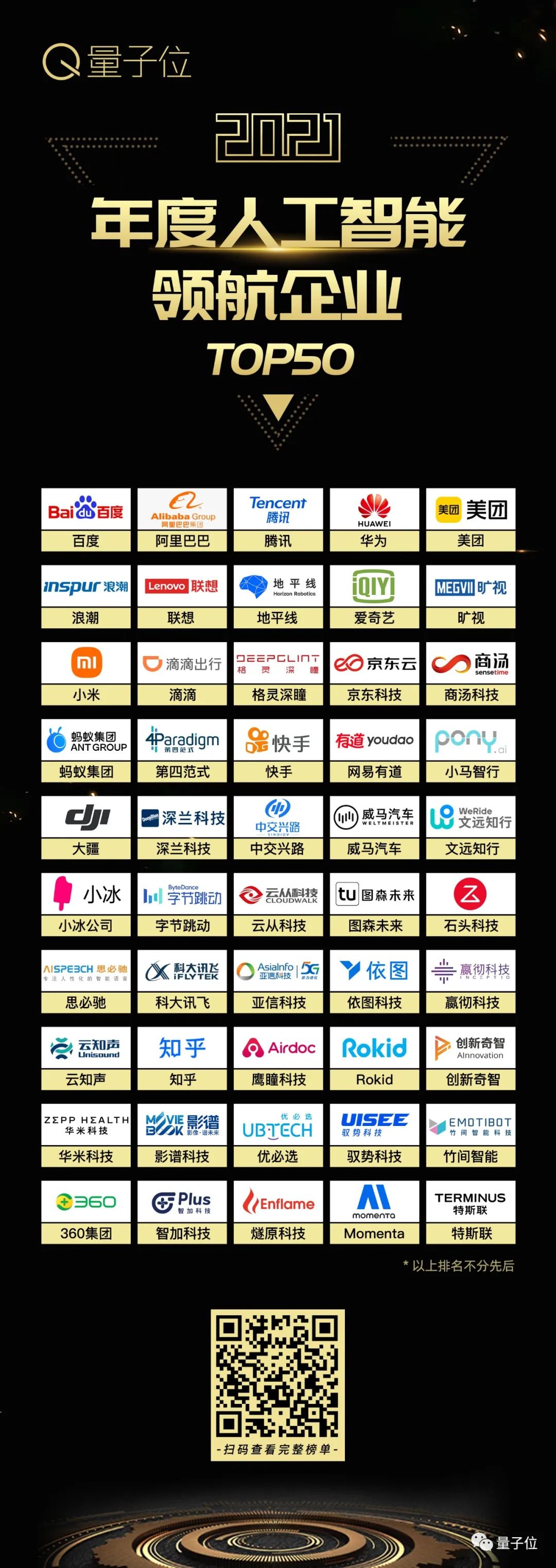 p.s.点击图片/链接查看完整榜单:2021人工智能年度评选结果揭晓!AI落地最佳参考在此奉上