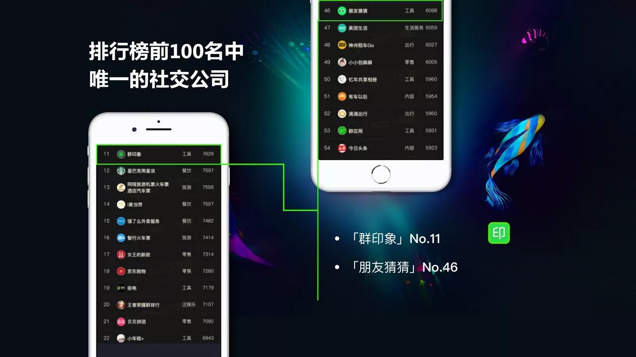在3万个小程序里排在前100名——而且我们是唯一一家社交进到100名以内,和两个小程序上榜(一个是第11名,一个是第46名)的公司。