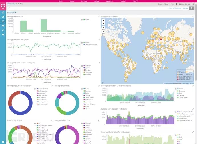 以上内容摘录自 Freebuf.com 失路之人 的文章 T-Pot多蜜罐平台:让蜜罐实现更简单