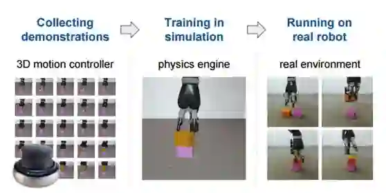我们提出了一个原则性的机器人学习管道。我们使用3D运动控制器来收集人类在一个任务上的演示。我们的强化和模仿学习模型利用这些演示以促进在模拟物理引擎中的学习。然后,我们执行sim2real迁移,将学习的视觉运动策略部署到真正的机器人上。