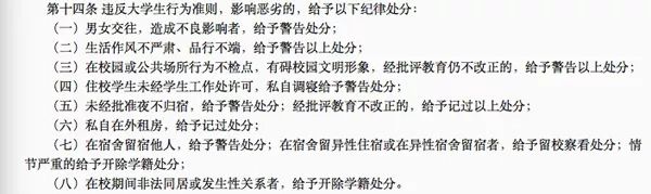 4、@小小编辑:3月20日,黑龙江齐齐哈尔工程学院正对男女生交往等行为进行严查,一旦发现男女生不当交往将扣除相应学分并进行通报。 该校官方网站上公布的《学生违纪处分条例》,对“违反大学生行为准则”有相关规定,其中“在校期间非法同居或发生性关系者,给予开除学籍处分”。#乱弹大吐槽#