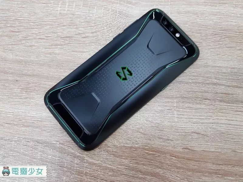黑鲨出场!带点 X 型的背壳是智能天线,避免在玩游戏时压到天线导致中离。中间的 S Logo 有做呼吸灯设计,会在玩游戏和接到讯息通知时发光~