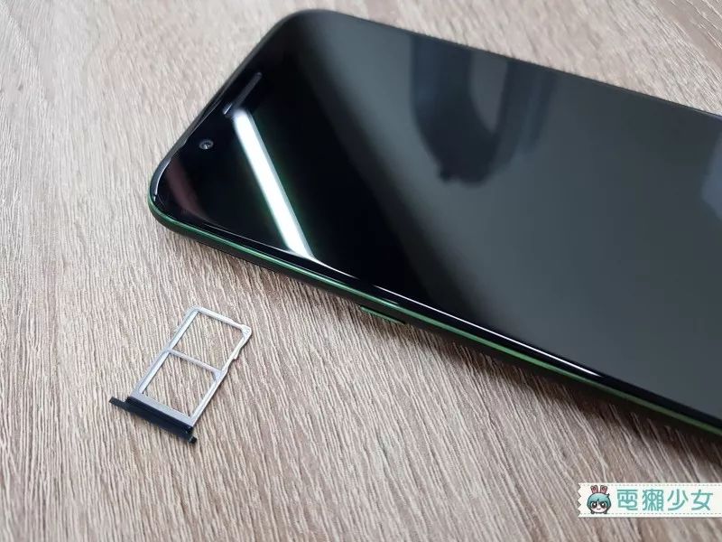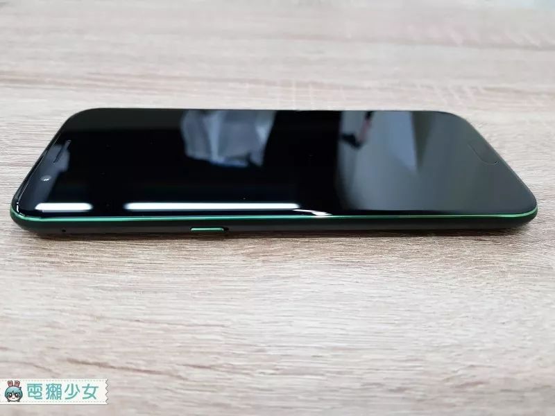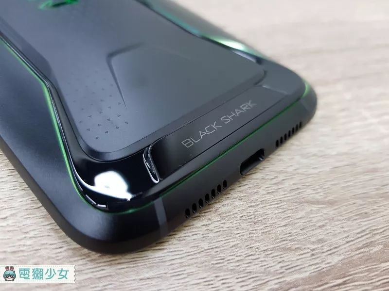 刚拿到黑鲨时宇恩就赞叹了好几声,主因就是除了背壳外,手机周围同样有金属深绿色的饰边,看起来很有质感。防干扰的 Shark 键同样有金属绿饰边~