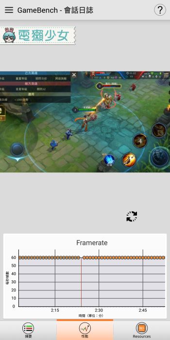 在传说对决部分,这种不太吃效能的 Moba 游戏一般都是很 OK 的,一路上不论怎麽砍怎麽跑都是稳稳的最高 60 帧,2K 解析度的画面看起来也非常流畅