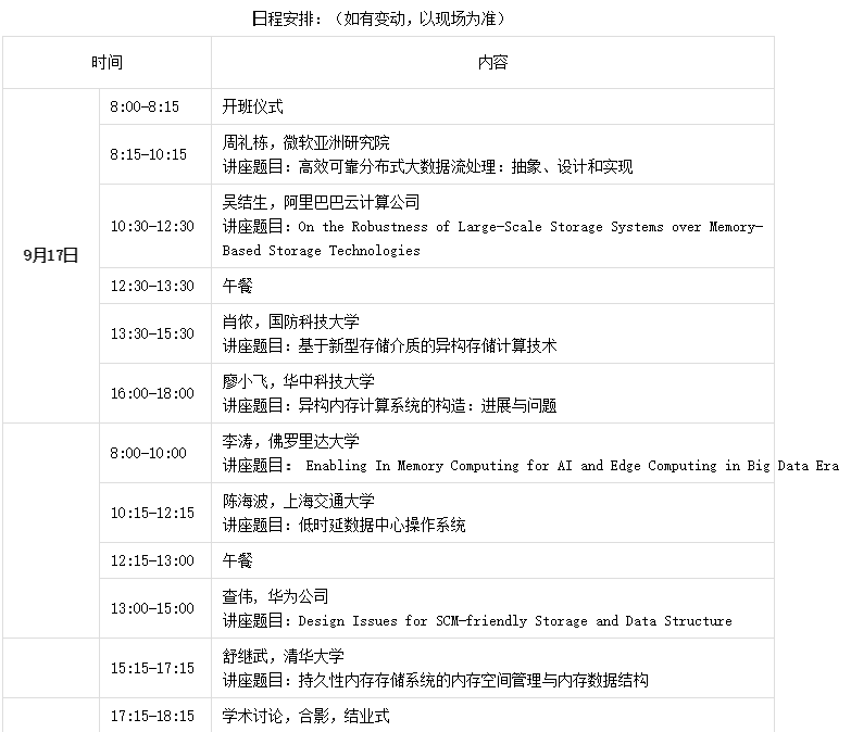 人机物融合生态的快速发展,推动着大数据基础设施不断追求高时效、低能耗的设计。近些年来,新型存储器件(各种非易失型存储器件,如相变存储、3D XPoint等)的迅猛发展,已经为大数据高时效的存储与计算提供了新的可能。这些新型存储器件的应用必将对传统DRAM-I/O的存储架构产生冲击,也将对上层核心软件系统、编程环境提出挑战。同时,随着新型存储器件从模型、概念到小规模量产和应用,大数据高时效体系结构的重构脚步已经越来越近,如何支撑大数据应用获得重要收益必将成为未来几年工业界和学术界关注的热点问题,也是国家重点研发计划支持的重点。本期CCF学科前沿讲习班邀请了多位学术界和工业界的著名学者,将围绕大数据环境下的内存存储与内存计算的系统结构与关键技术进行介绍,探讨相关技术的未来发展趋势。本讲习班旨在帮助学员了解内存存储与内存计算的当前热点和前沿的科学问题,开阔科研视野,增进学术交流和增强实践能力。