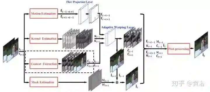 基本传统方法都是采用运动估计和补偿的方法,俗称MEMC,所以我把它归类为2.5-D。前面运动估计已经用深度学习求解了,现在这两个问题自然也是。
