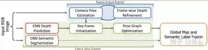 再附上一个SLAM的模型CNN-SLAM:主要是加上一个单目深度图估计的CNN模块。