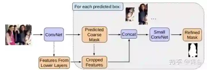 而下面这个是从目标检测算法Faster-RCNN演变的实例分割模型MaskLab,论文发表在去年CVPR‘18: