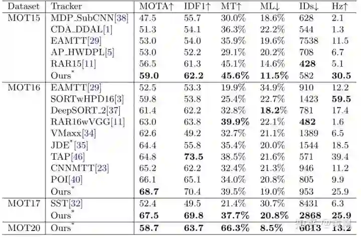 备注:MOT15~20(private):59.0、68.7、67.5、58.7 MOTA