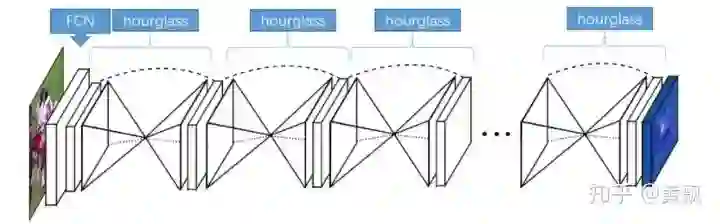 我们知道原始的anchor-free框架的大多数backbone都是采用了骨骼关键点中的hourglass结构: