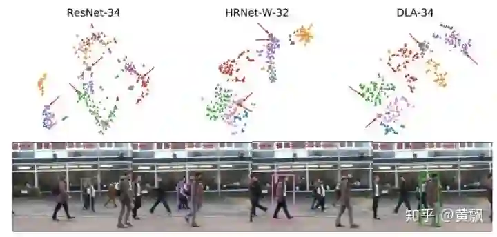 后面我会单独开一个Re-ID和MOT的专题,这里呢作者就谈到了Re-ID网络中典型的多尺度问题,所以就提出要将hourglass结构改成上图中的多尺度融合的形式。最后通过两个分支完成了检测和Re-ID任务的集成,那么接下来的部分就是如何训练。