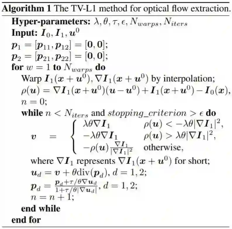 算法 1:用于光流提取的 TV-L1 方法