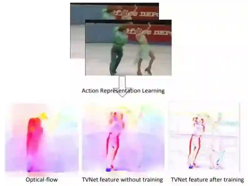 尽管我们提出的 TVNet 是以特定的 TV-L1 架构初始化的,但相比于标准的光流,它可以在进一步微调之后学习到更丰富和更面向任务的特征。