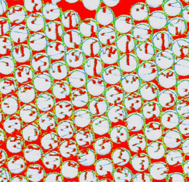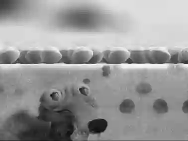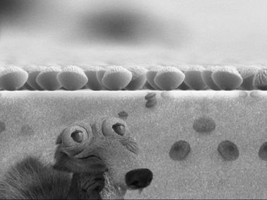 聚苯乙烯小球在氧等离子气体刻蚀下形成粗糙表面,看起来就像是小松鼠的一粒粒橡子。