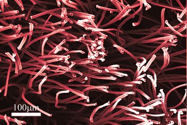 管式炉碳化了的丝绒,一根根的碳纤维相互竞逐,展现出强大生命力。