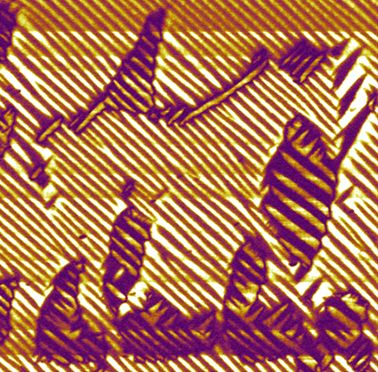10µm×10μm的R相BFO薄膜,其PFM相图巧夺天工般形成了骏马形象,预示着研究所将在新的一年一马当先,马到成功。
