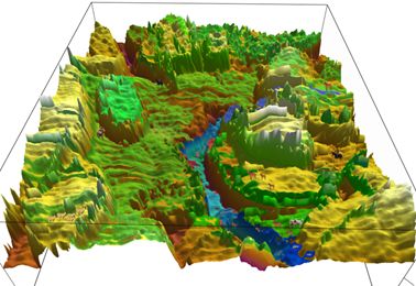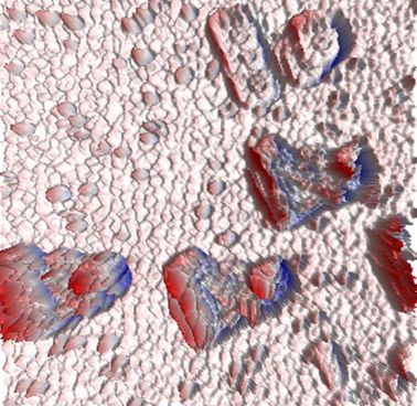 样品为热蒸镀法制备的C8-BTBT薄膜(2µm×2μm),使用AFM对其进行表征,得到3D图。再运用PS对其进行修饰,看起来就像喀纳斯湖的月亮湾。