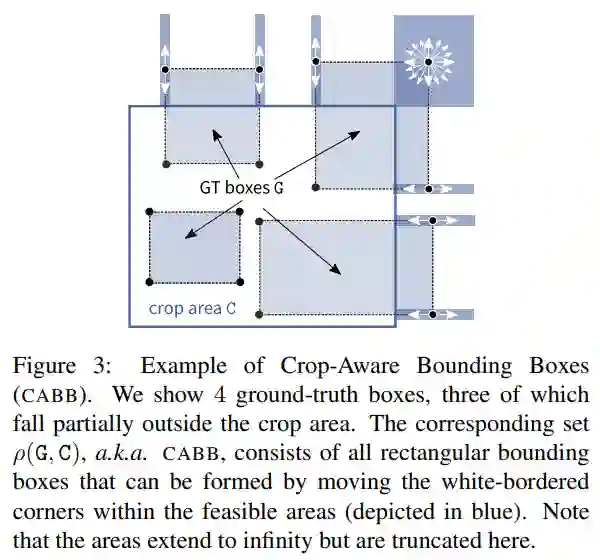 ,该策略可以利用 crop-aware 损失函数(crop-aware bounding box, CABB)来解决裁剪大型目标的问题;其次,他们