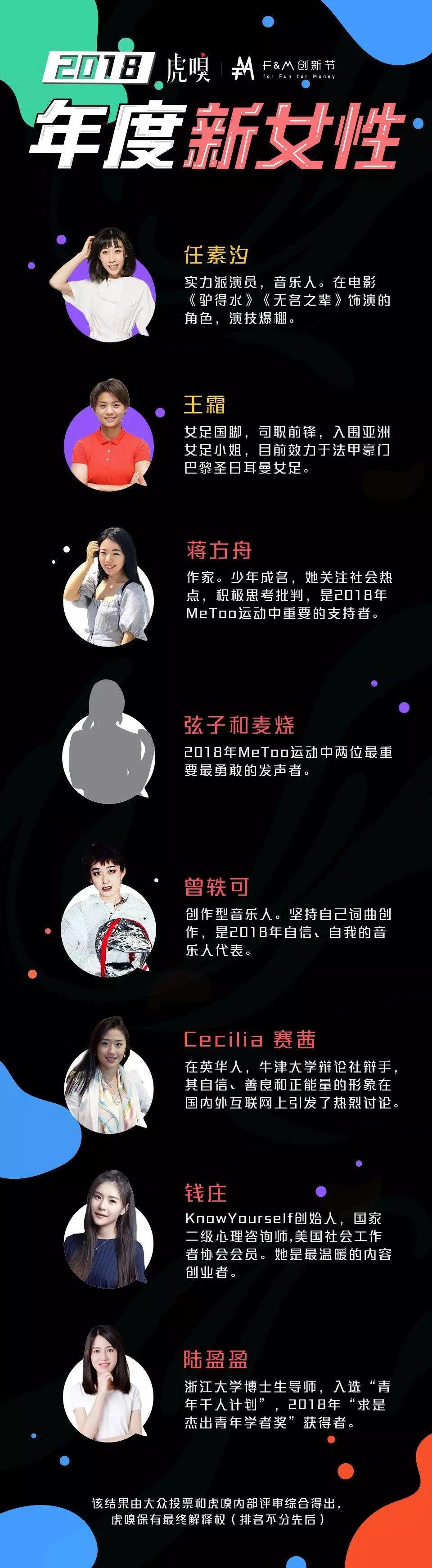 我们知道,正在努力的新女性远远不止上述诸位。只是在2018年,这些获奖者,以及入选者的努力,已经造成了不俗的社会影响。未来在女性身份的重新定义与进一步阐释上,我们希望能看到更多不同职业、不同领域的女性,贡献自己的力量。