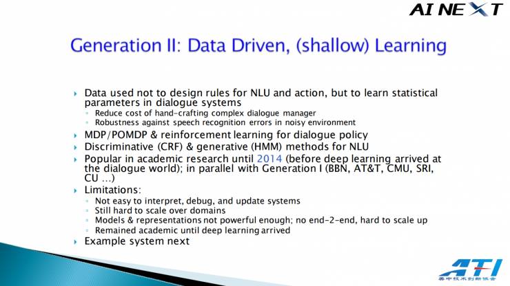 接下来,我会讲讲口语对话系统的三代发展。