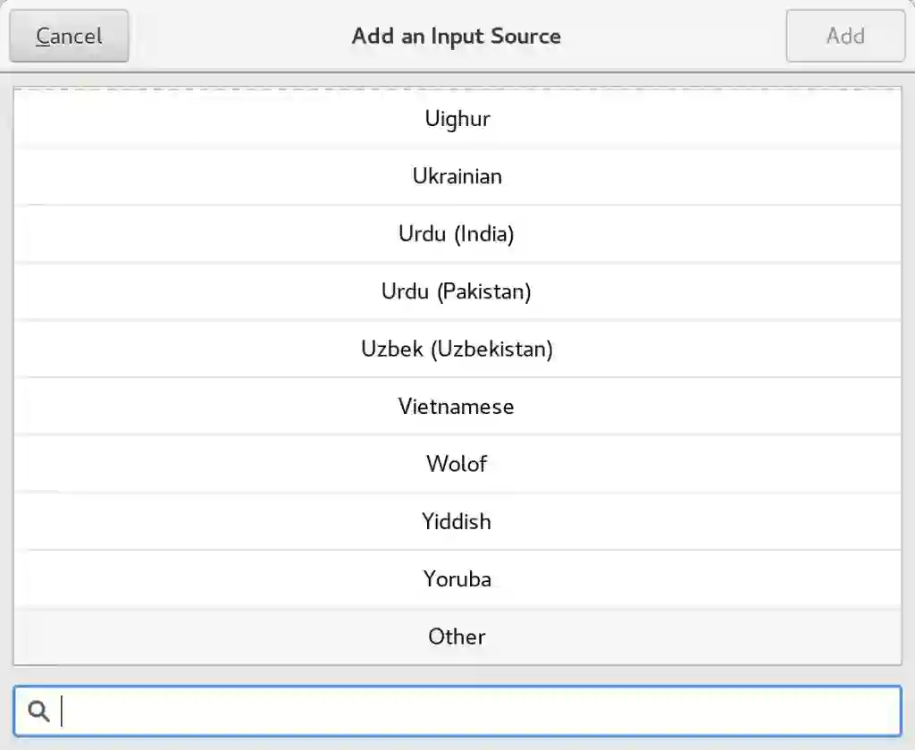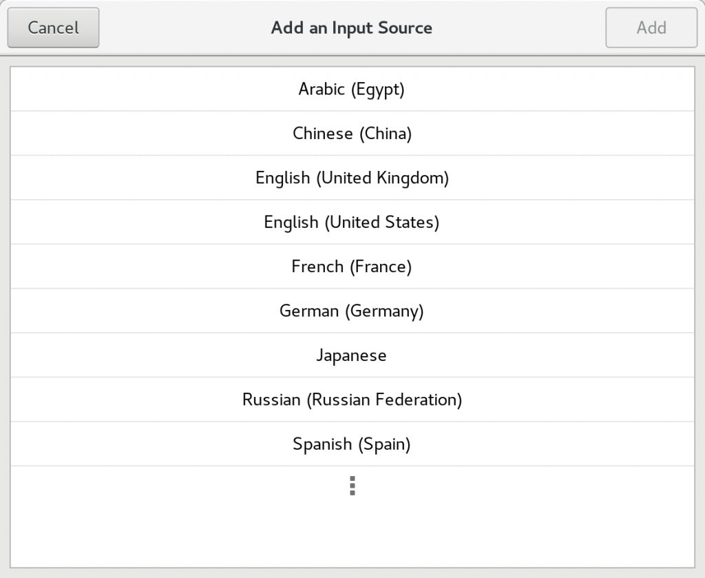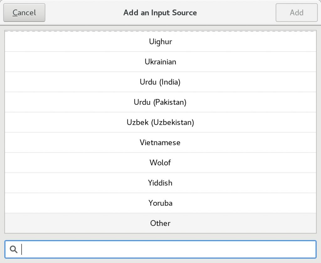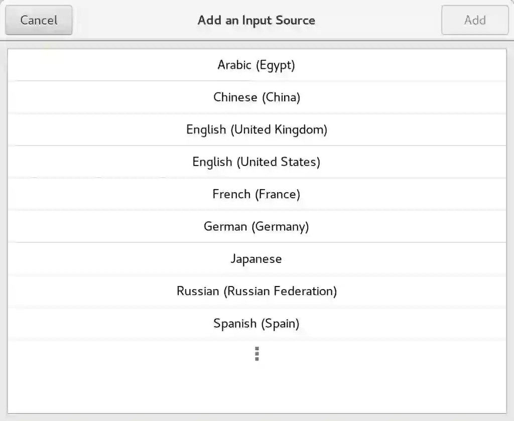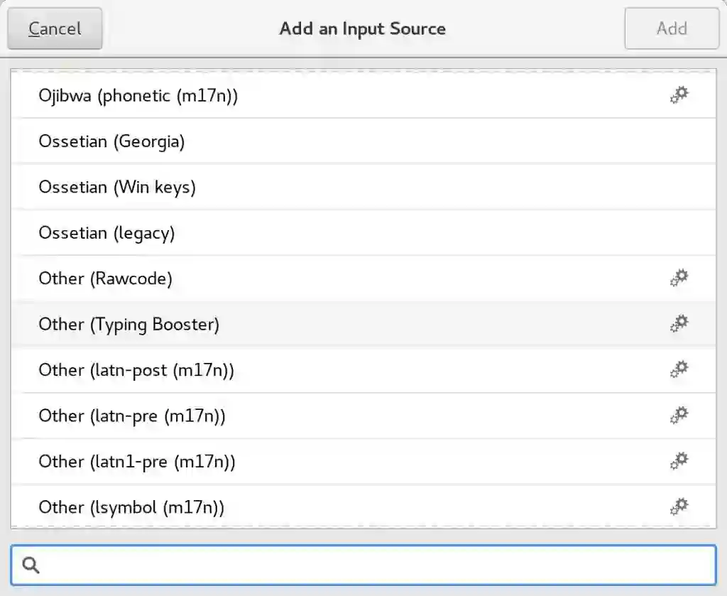 这个高级输入法由 iBus 在背后支持。该高级输入法可通过列表右侧的齿轮图标在列表中识别。