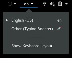 输入法下拉菜单自动出现在 GNOME Shell 顶部栏中。确认你的默认输入法 —— 在此示例中为英语(美国) - 被选为当前输入法,你就可以输入了。