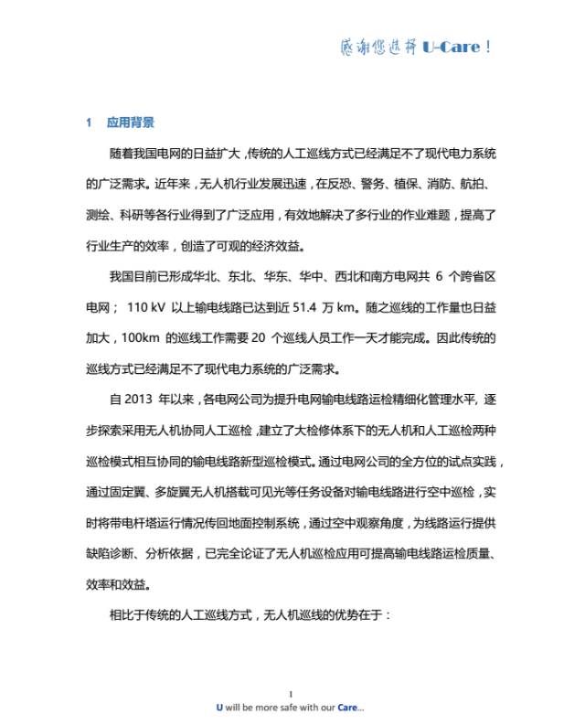 1.在飞行计划申请方面,公司使用U-Care系统可实现与空域管理部门审核部门对接,使计划申报和审批更加流畅。