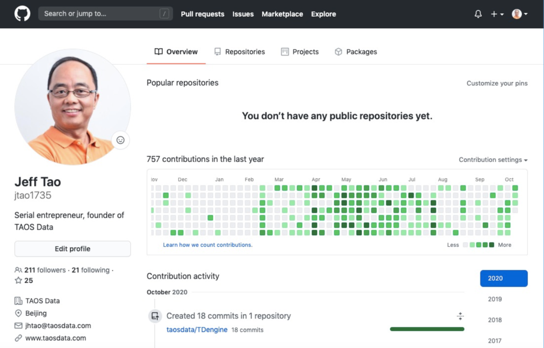 去年 7 月份 TDengine 单机版核心功能开源,今年 8 月 3 号整个集群功能全部开源,Github 地址是:www.github.com/taodata。目前在 GitHub 上有 13.9K 的 Star,3.6 K 的 Fork,接近 4K 的 Issue。
