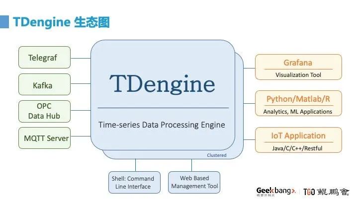 我先介绍一下 TDengine,它是一个开源的高效的物联网大数据平台,专门为物联网、车联网、工业互联网,IT 运维设计优化的大数据平台,除了核心的时序数据库功能之外,还有缓存、数据订阅、流式计算这些功能,是一个专用的大数据平台。