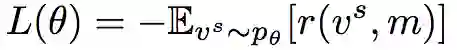 在强化学习的语境下,Polygon-RNN++的RNN解码器可以视作序列决策智能体。CNN和RNN架构的参数θ定义了选择下一个顶点vt的策略pθ。在序列结束后,我们得到奖励r = IoU(mask(vs, m))。因此,最大化奖励的损失函数为: