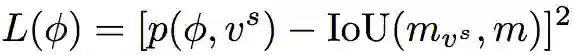 上式中,p为网络的预测IoU,mvs和m分别为预测掩码、实际掩码。