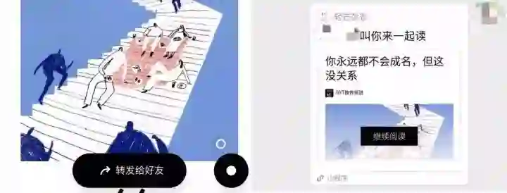 在互动分享方面,用户还能邀请好友“一起读”一篇文章。邀请成功后,在文章页面中能看到好友的实时阅读进度和做的标注评论。可以说是充分利用了微信内交互方便的优势。