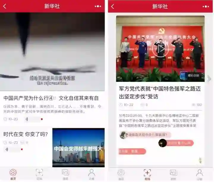 比如在小程序“新华社微悦读”中,进入首页就能看到一段视频预览,每篇文章下面有一段音频朗读可以直接点击。在“现场”板块中,还加入了直播和弹幕互动功能。利用小程序不断新增的多媒体能力,资讯类小程序可以使内容呈现形式更加丰富。