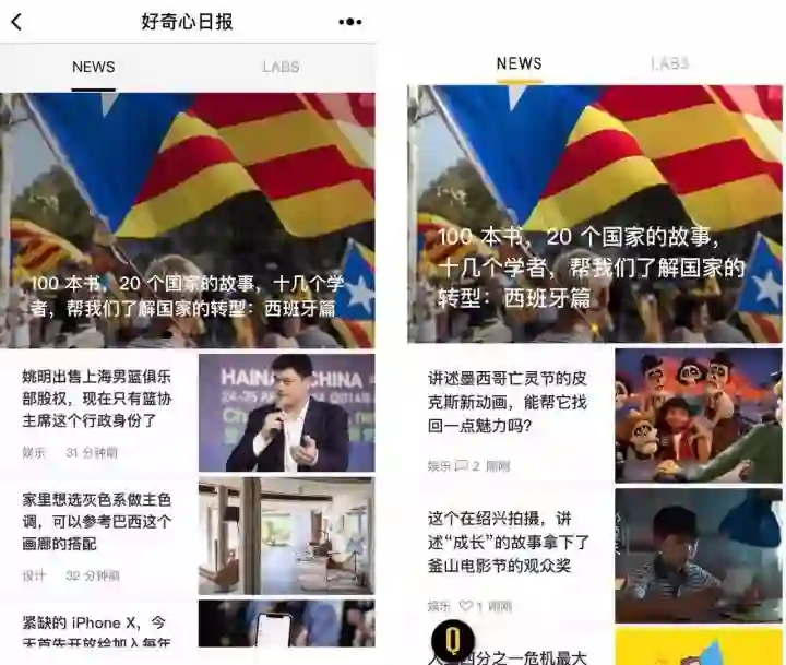 “好奇心杂志”基本就是好奇心日报App的精简版,省略了App中的评论功能,除此之外都很相似。