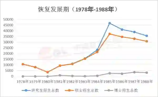 1949年到1977年,我国研究生招生人数增长较为缓慢,累计为两万余人。