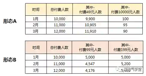 比如上边例子中AB形态,为了举例方便进行了简化,但代表了两种很经典的业务形态,依赖土豪用户的大R型业务和依赖大量普通用户的大DAU型业务。