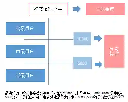 做用户分层其实很简单,如下图所示,只需要分类维度+分类标准两样东西即可。