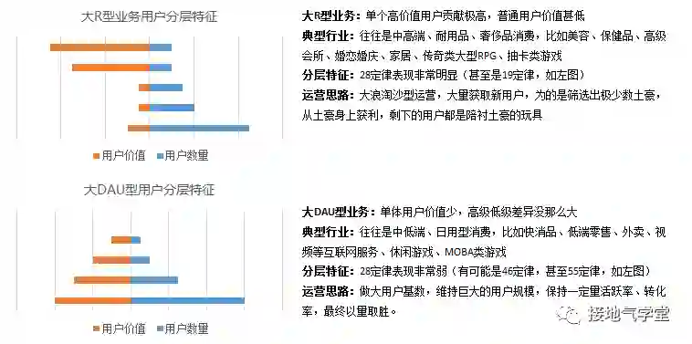 (大R和大DAU是游戏行业术语,这两种形态在游戏行业区分最泾渭分明,因此这里直接套用一下)