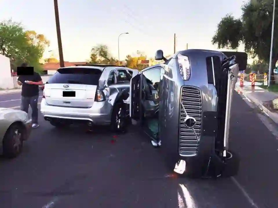 当时,优步自动驾驶汽车行驶在三车道最左边的一道,右边两车道发生了堵车。有一位人类司机想左拐穿过车道,可能在穿越车道时没有看到优步的车,在驶入最左边车道时发生了翻车。警察后来称,优步无需为此事故担责。
