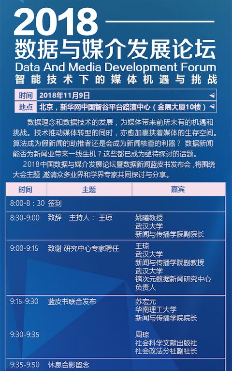 与此同时,中国数据新闻蓝皮书也将在本次论坛进行发布,届时亦邀请众多业界和学界专家共同探讨与分享。