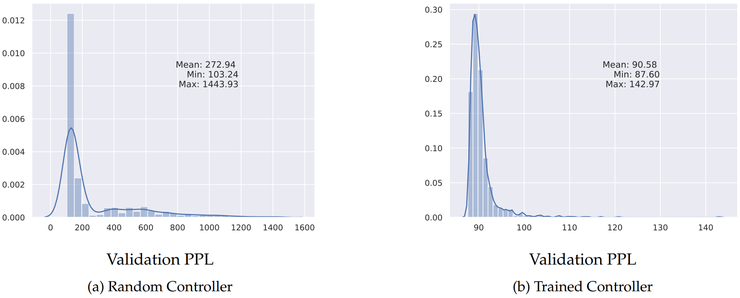 经过训练的控制器采样得到的一组架构具备更少多样性,因为它在定义上无可避免地存在偏见。这就意味着,当在训练期间更新共享参数时,它们一定会对较少的架构有效。而另一方面,随机控制器采样得到的架构会更加多变,因此其更新共享参数的目的在于试图变得对非常多的架构有效,然而最终的结果是,它对于任何给定的架构都不会特别有效。