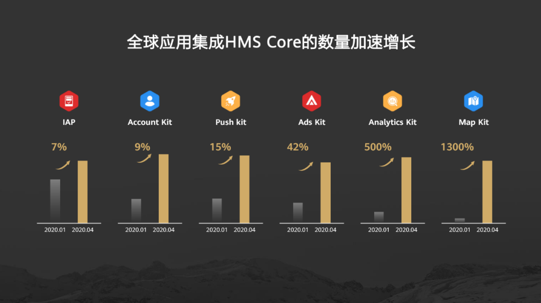 如今,HMS Core更是交出了一份满意答卷,在接入数量增长表现上,我们看到了HMS Core更为出色的成绩。从今年1月至4月,全球开发者应用集成数量加速增长,比如广告服务提升42%、分析服务提升500%、地图服务提升1300%。从接入数量增长趋势来看,HMS Core得到了更多开发者的青睐,这也意味着更多创意应用被开发。
