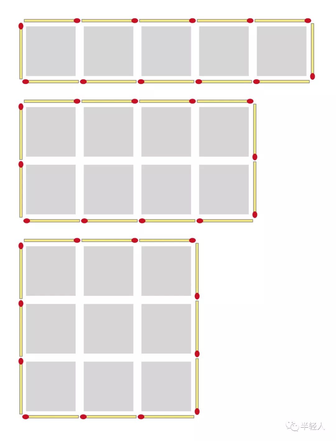 让孩子自己去发现长方形的不同边长组合,并没有多么困难,而且还有摆弄火柴棍的乐趣。通过实际操作让孩子发现其规律,孩子也就看到了一个清晰的映射关系,大人可以画出格子让孩子把规律记录下来。