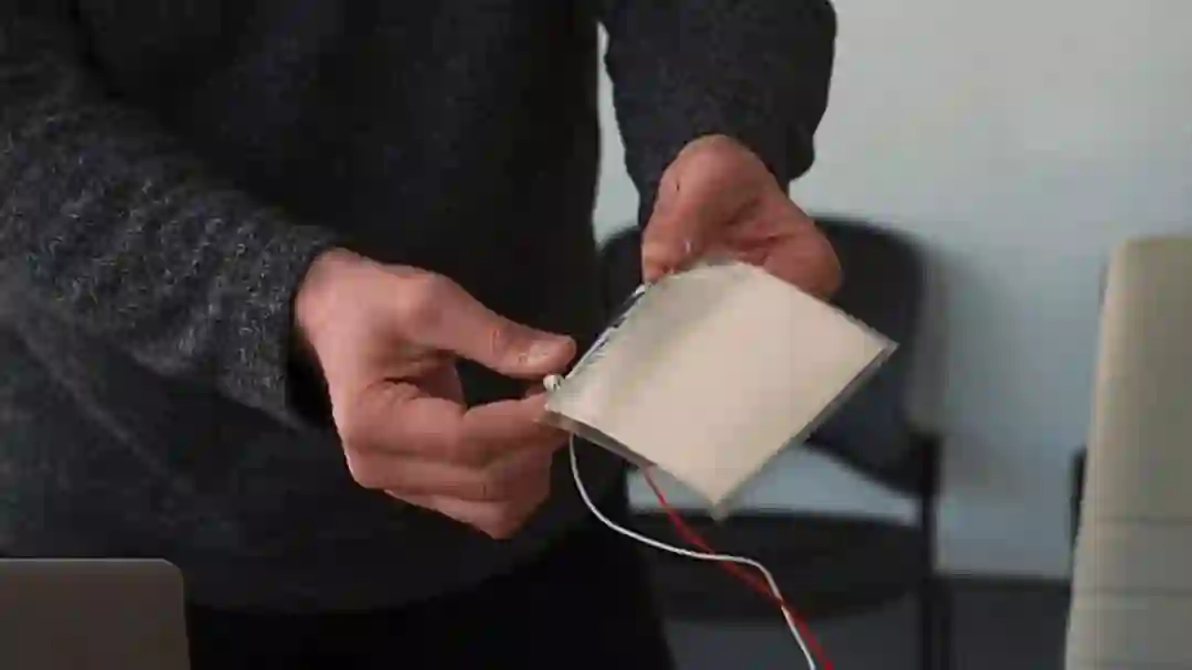 “看起来像一张薄薄的纸,在上面贴上两个夹子,将它插入电脑的耳机端口,然后开始听到它发出的声音,感觉很了不起。它可以在任何地方使用,只需要一个运行它的电力。”研究论文通讯作者、MIT.nano 主任、有机和纳米结构电子实验室(ONE Lab)的负责人 Vladimir Bolović 说。