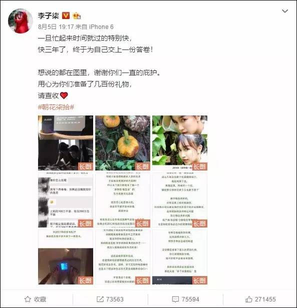 “想起第一次告诉大家有这个品牌存在的时候,说来是一腔孤勇,但更多的是忐忑和不安。”店铺开业当天的凌晨,李子柒在微博如此写道。