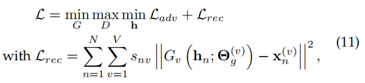 该模型在对抗损失和重建损失的同时约束下进行更新,min-max-min形式目标函数如下: