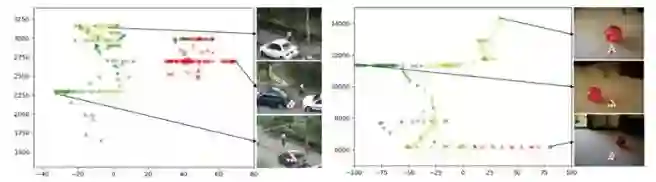 通过上表可见,采取离散动作的跟踪器在两个场景中都可以取得更高的成功率。在室外,离散动作可以让目标大小保持更加稳定(更小的方差)。无论是室内室外,基于离散动作的跟踪器都能保证更小的平均偏差。综合这些结果,说明了采用离散动作可以帮助模型更好更鲁棒地迁移到真实场景。我们猜想对动作空间离散化可以使得智能体对场景中的干扰和机器人控制系统的噪声都更加鲁棒,而连续空间会更加敏感。