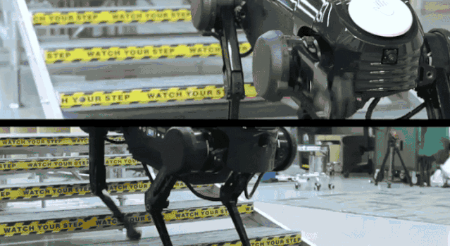 和国际上其他四足机器人走木块的场景比较,此次 Jamoca 所挑战的梅花桩落脚面积更小、高度更高,并有台阶的组合,实现的难度要更大。