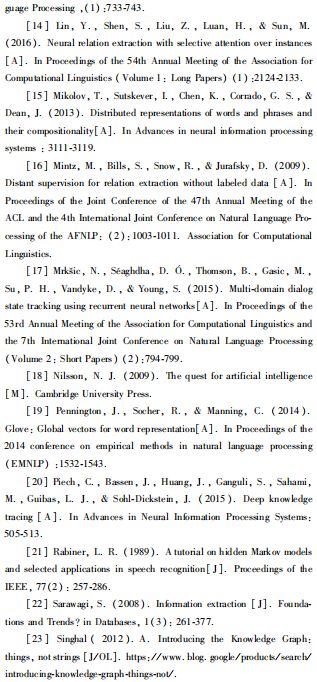 知识图谱通常指利用多关系图结构描述真实世界或特定领域各类实体及实体关系的知识库(Singhal,2012)。知识图谱为人工智能提供了知识基础,可以支持智能语义检索、个人智能助理、智能深度问答等智能应用。从应用领域角度,它分为通用知识图谱和领域知识图谱。通用知识图谱面向普通用户,侧重内容广度;领域知识图谱通常供行业人员使用,侧重内容的深度和精度。近年来,随着知识图谱研究的发展,工业界和学术界研发构建了 DB Pedia(Lehmann et al., 2015), Concept Net (Speer & Havasi ,2013)、 XLORE( Wang et al.,2013)等知识图谱。