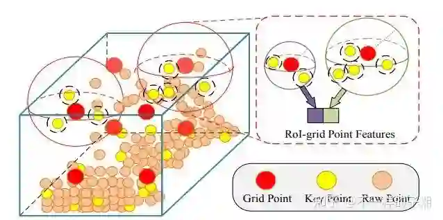 核心也就是如何将上述的两种方法有效的结合起来,这里作者的做法是:在每一个3D proposals内平均的采样一些Grid-point,然后再通过P2的FPS最远点采样的方法得到该Grid_point周围的点,再通过结合去进一步refine最后的proposals